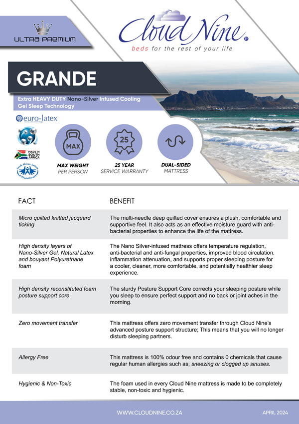 • Luxurious high-density layers of Nano-Silver Gel, Natural Latex, and buoyant Polyurethane foam provide comfort and support.