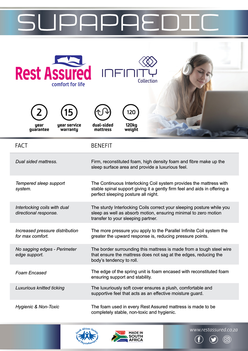 • Dual-sided Infinity Spring Unit quality mattress.