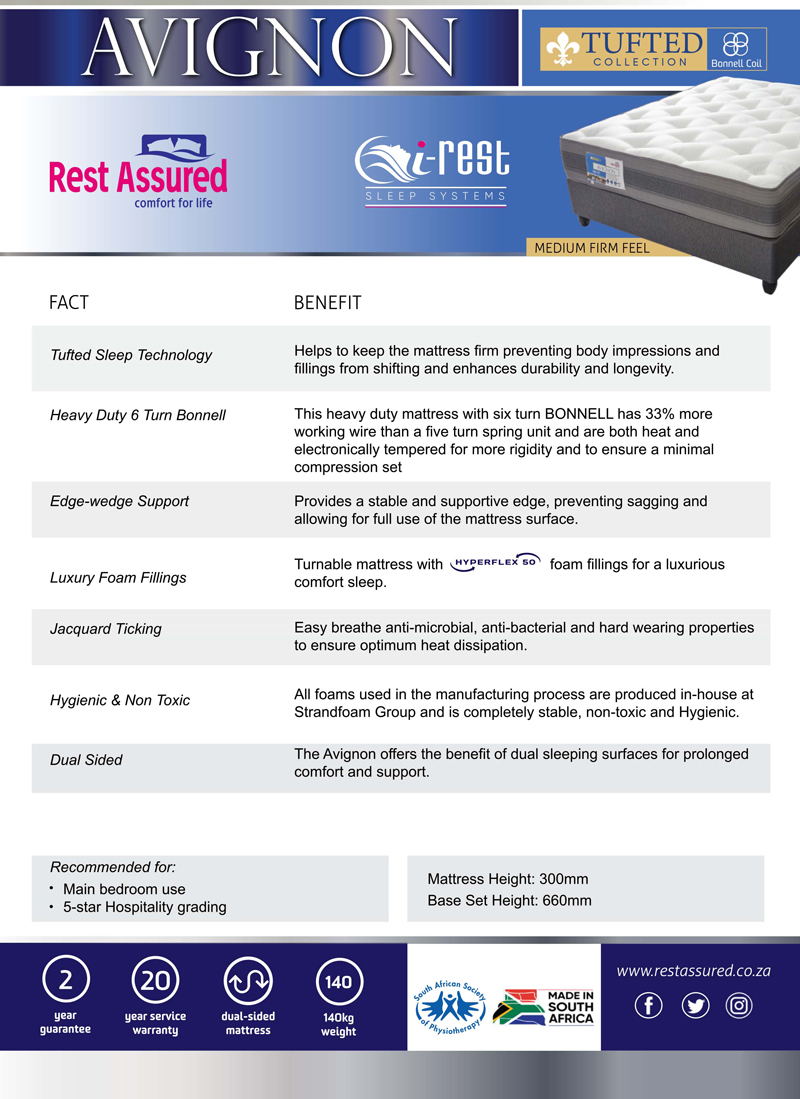 - Hi-Tech Double-tempered coils for extra durability